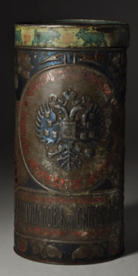 IMPERIAL RUSSIA TIN BOX WITH DOUBLE HEAD EAGLE