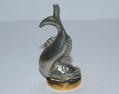 Antique FIGURAL FISH PEWTER WAX SEAL STAMP .ART NOUVEAU DECO JUGENDSTIL