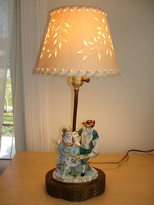GORGEOUS antique table lamp with porcelain woman and man figure