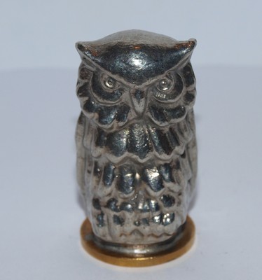 Antique FIGURAL OWL PEWTER WAX SEAL STAMP .ART NOUVEAU DECO JUGENDSTIL