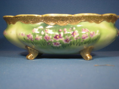 Title (ebay affiliate link): Nippon Footed Fluted Rim Bowl Floral Design Gold Moriage Accents Striking