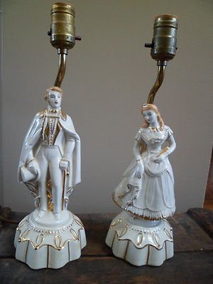 Antique Victorian Girl and Boy Table Lamps