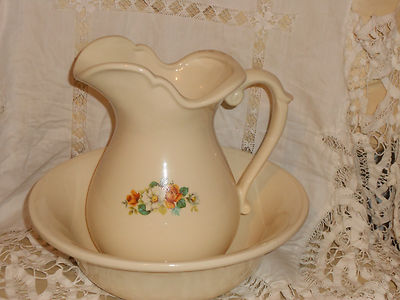 McCoy pottery water basin & pitcher USA 7549 floral lithograph beautiful hurry