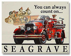 Nostalgic Tin Metal Sign - Count On Seagrave Fire Engine Truck Fireman #695