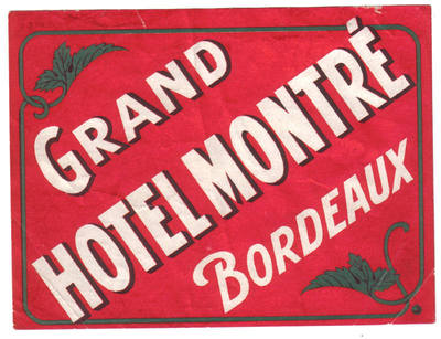 BORDEAUX FRANCE GRAND HOTEL MONTRE VERY OLD LUGGAGE LABEL
