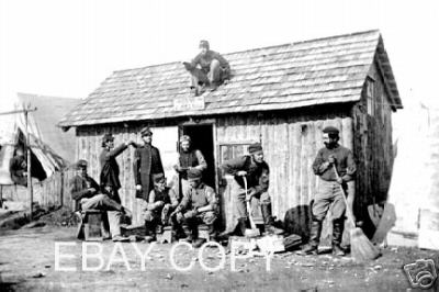 Civil War Photo- 4 x 6 inches Soldiers In Front Of A Wooden Hut