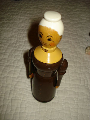 CARVED WOOD CHARACTER MISS PEEBLES SIGNED ROBIN & NELL DALE ENGLAND