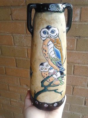Austrian Amphora "Campina" Series 10" x 3" owl motif Vase