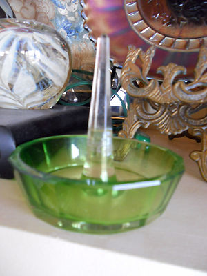 Beautiful Vaseline (?) Glass Cut Crystal Ring Holder Dish
