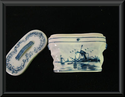 ANTIQUE DELFT PORCELAIN OPERA GLASSES CASE LADIES THEATRE BINOCULARS WINDMILLS