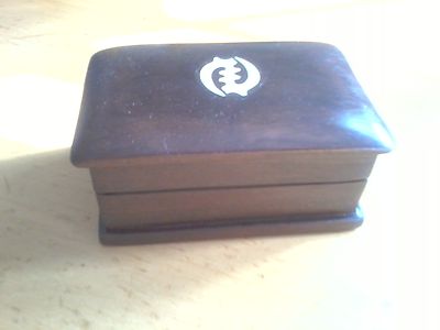 Old Hand-Made Dark Wood w/ Bone Inlay Small Trinket Box