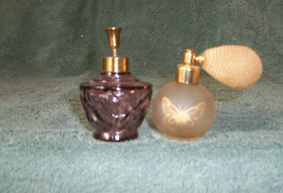 Title (ebay affiliate link): ANTIQUE SET OF 2 PERFUME BOTTLES ONE BEING AMATHEST WITH ORNATE CUT DESIGNS
