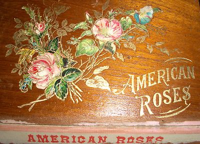 VTG~Antique~1900~WOOD WOODEN~CIGAR BOX~PAINTED~AMERICAN ROSES