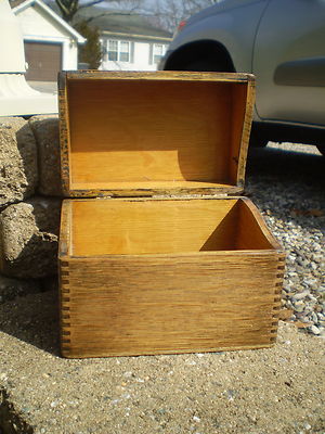 VINTAGE WOODEN OAK FILE BOX WOOD LIBRARY RECIPE OLD 6 X 4 CARDS