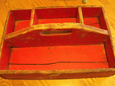 Title (ebay affiliate link): EARLY ANTIQUE PRIMTIVE TOOL OR CARRIER WOOD BOX OLD BARN RED PAINT DIVIDED BOX