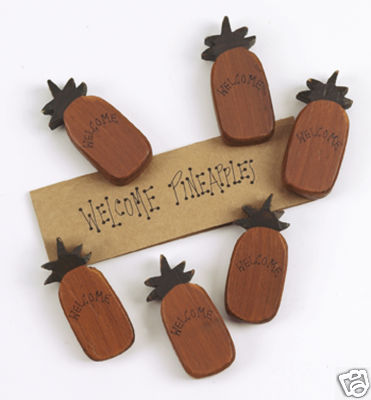 Title (ebay affiliate link): Primitive Wooden Pineapple Magnets Welcome Magnets S/6 FREE Shipping