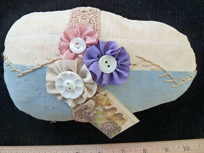 PRIM EASTER EGG~HANDMADE~VINTAGE QUILT~BUTTONS~TRIM~TEA DYED~EMBROIDERED