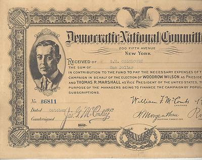 1912 Woodrow Wilson presidential campaign donor's certificate Democrat Party