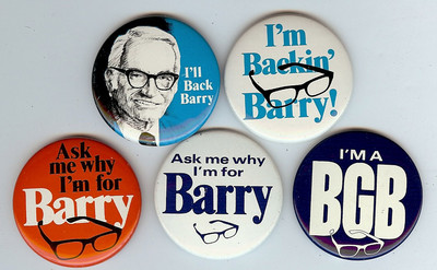 Title (ebay affiliate link): BARRY GOLDWATER BACKER - GLASSES DESIGN BUTTONS - 5 DIFFERENT VARIETIES