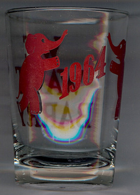1964 WE WANT BARRY - DANCING ELEPHANTS DESIGN CAMPAIGN GLASS