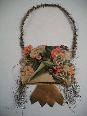 Title (ebay affiliate link): UNIQUE Old German Victorian DRESDEN FLOWER BASKET, Tinsel Trim, Circa 1890