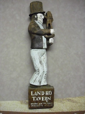 Title (ebay affiliate link): Vintage Antique Primitive Hand-Carved Wooden Sailor 'Land Ho' Tavern Sign