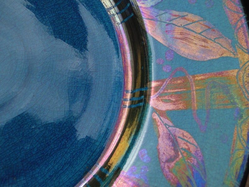 Large Turquise Lustre Charger Platter Serving Plate Lusterware Muffle Kiln