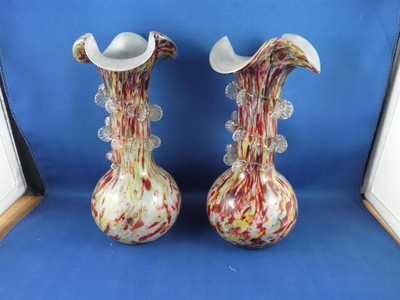 ANTIQUE PAIR END OF DAY SPATTER GLASS VASES VASE ROUGH PONTIL 19cm TALL