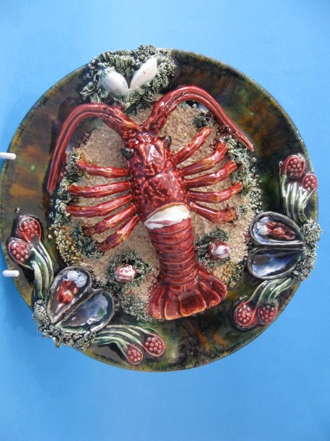 Title (ebay affiliate link): Antique Mafra Alvaro Jose Palissy Crayfish Oyster Faience Majolica Plaque 1860