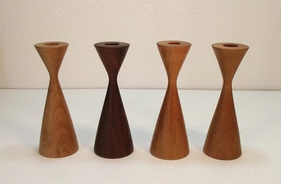 Title (ebay affiliate link): 4 Hand Turned 1980's Modernist Wood Candlesticks Harstine Island JAL Osolnik Era