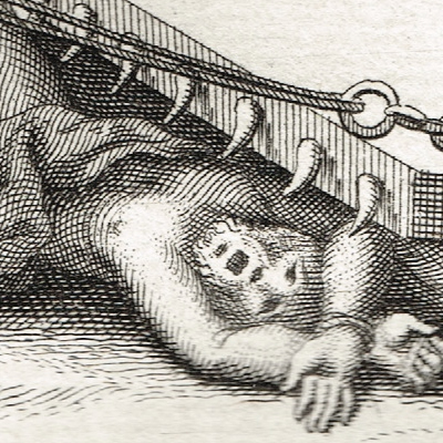 Title (ebay affiliate link): 1731 - TORTURE - DRAGGING UNDER SPIKED SLED & CHARIOT - Dutch engraving