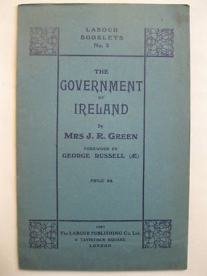 Title (ebay affiliate link): Rare Irish Labour Booklet by Mrs. Green * Gov't in Ireland 1921 first edition