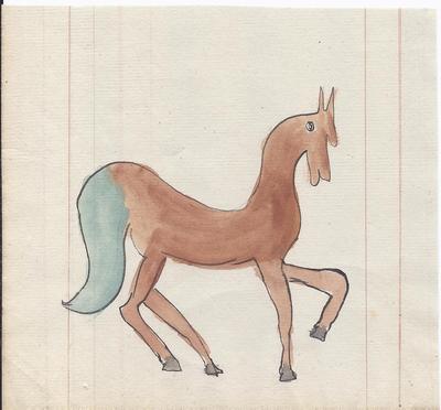Title (ebay affiliate link): Amish Childs Horse Watercolor & Ink Drawing on ledger paper from Lancaster Cty