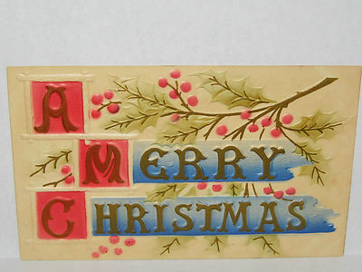 Title (ebay affiliate link): 1910 HIGHLY EMBOSSED POSTCARD "A MERRY CHRISTMAS" WITH HOLLY