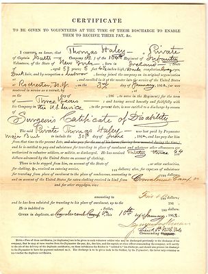 Title (ebay affiliate link): CIVIL WAR 104TH NEW YORK INFANTRY SOLDIER'S SURGEON DISCHARGE DOCUMENT 1863