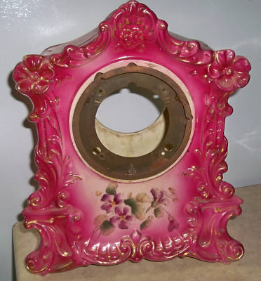 12" ANTIQUE GILBERT ROSE COLOR PORCELAIN MANTEL CLOCK