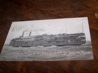 Title (ebay affiliate link): 1910 ship postcard Excursion on SS City of Chicago from St. Joseph Michigan