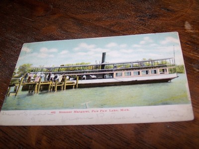 Title (ebay affiliate link): 1910 ship postcard Steamer Margaret, Paw Paw Lake, MI Michigan DPO Lake Point