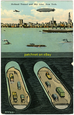 Title (ebay affiliate link): NEW YORK, Holland Tunnel and Sky Line, w. Zeppelin dirigible airship