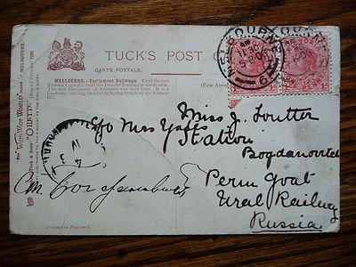 Title (ebay affiliate link): AUSTRALIA POSTCARD 1906 POSTED TO URAL RAILWAY RUSSIA USED