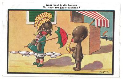 Title (ebay affiliate link): Black Americana - Black kids with umbrella and banana / F G Lewin - 1933
