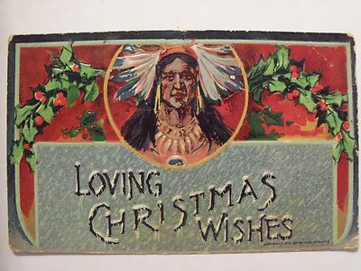 Title (ebay affiliate link): Loving Christmas Wishes,Indian W/ Head Dress Embossed Old Unused c.1910 Postcard