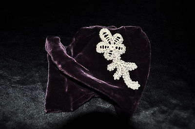 Title (ebay affiliate link): Vintage "grape" silk velvet fragment with Victorian era lace flower dolls