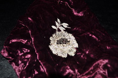 Wonderful plum wine vintage silk velvet with metallic lace flower for dolls