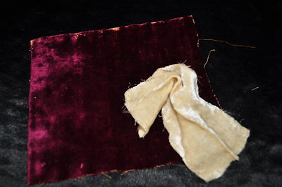 Title (ebay affiliate link): 19th Century "Deep Wine" Silk Velvet fragment with cotton base dolls
