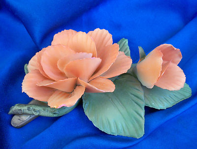 Lovely Porcelain Bisque Capodimonte Pink Flower & Bud