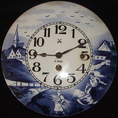 ANTIQUE Blue Delft Plate Clock German Germany, 7.5" 'D'
