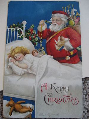 Title (ebay affiliate link): Rare Ellen Clapsaddle Santa Claus Girl Doll Teddy Bear Christmas Postcard 695