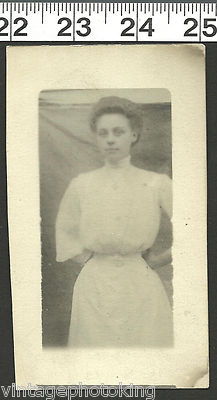VINTAGE OLD PHOTO RPPC/ PRETTY WOMAN IN WHITE DRESS WITH A VERY SKINNY WAIST(755