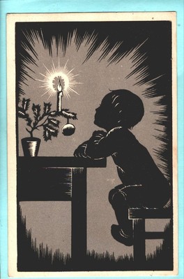 Title (ebay affiliate link): Silhouette lonely boy child christmas candle art postcard 1930s